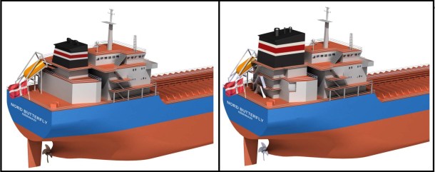 Left: Aftship as originally built – Right: Aftship with scrubber installed