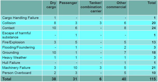 Some interesting information on accidents involving UK merchant vessels have been extracted from the report and are displayed below.