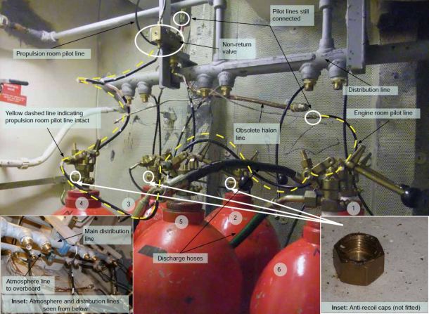 - The tug’s crew and the service engineers worked in isolation, which resulted in the service engineers entering a potentially dangerous space and, concurrently, the vessel sailing with her main machinery space fixed fire extinguishing system inoperable.