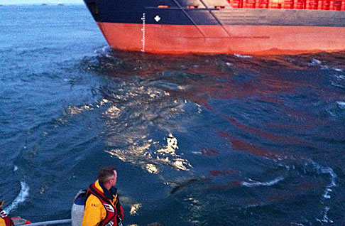 The vessel contacted the RNLI lifeboat from Alderney (lifeboat Roy Barker One was on the scene within 15 minutes) which inspected the vessel spotting damage to the Huelin Dispatch’s stern. The crew also reported that there was some water ingress, but was able controlled by temporary repairs. No reports of injuries to the eight crew on board. The vessel refloated on the rising tide and proceeded to Falmouth to drydock.