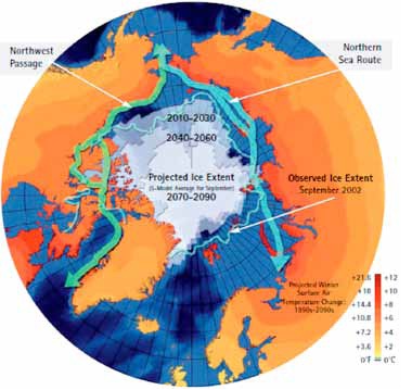 Record of melting Ice through the years (Source: ACIA (2004) Arctic Climate Impact Assessment, Highlights, Cambridge University Press)