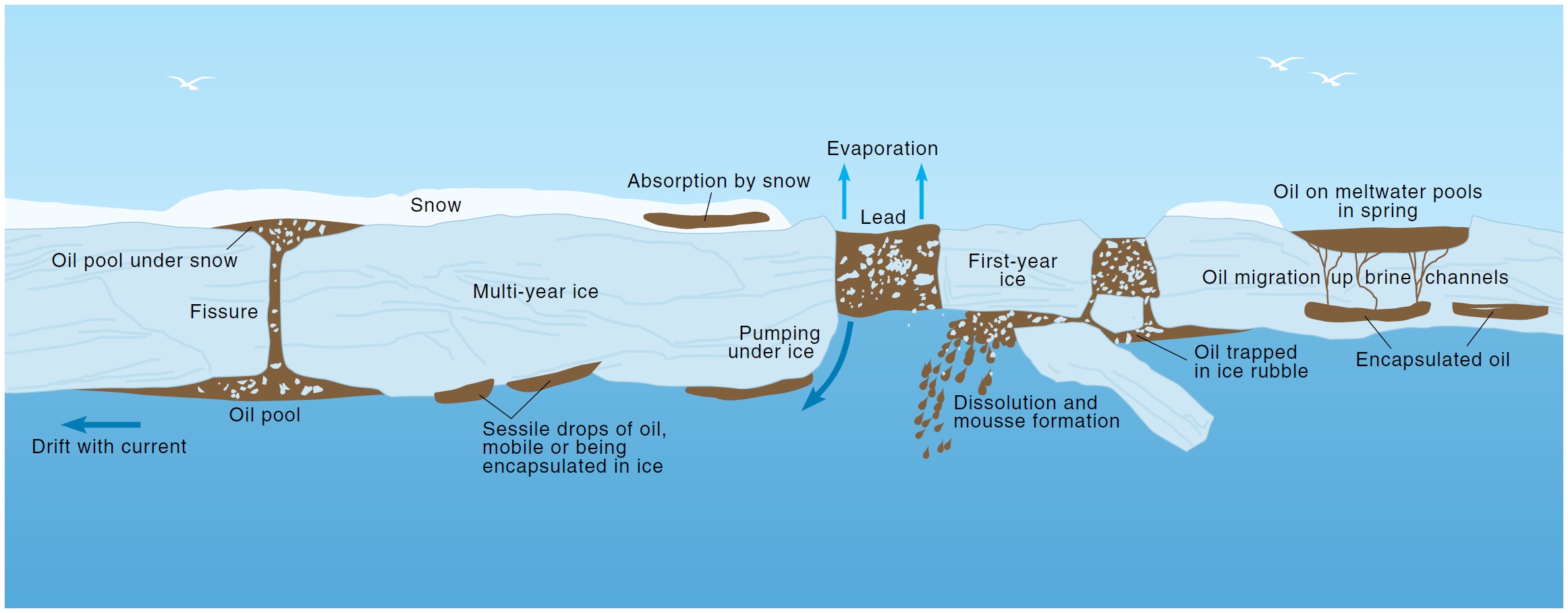 Possible interactions between HFO and Arctic Sea Ice in the event of an oil-spill (Source: AMAP Assessment report: Arctic Pollution Issues (after original figure by Bobra and Fingas))