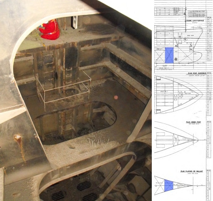 Left – Forward bulkhead with stringers, ladders and guardrails