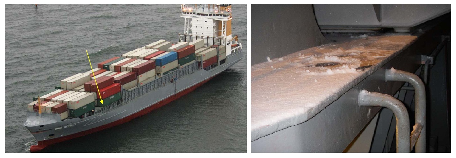 Weather conditions on the night of the accident were difficult. The deck was slippery with recently fallen snow. When snow falls on a painted steel deck, moving around and working become extremely dangerous. Slippery footwear only increases the risk of an accident. Furthermore, it was dark and the deck was icy at the time of the occurrence.
