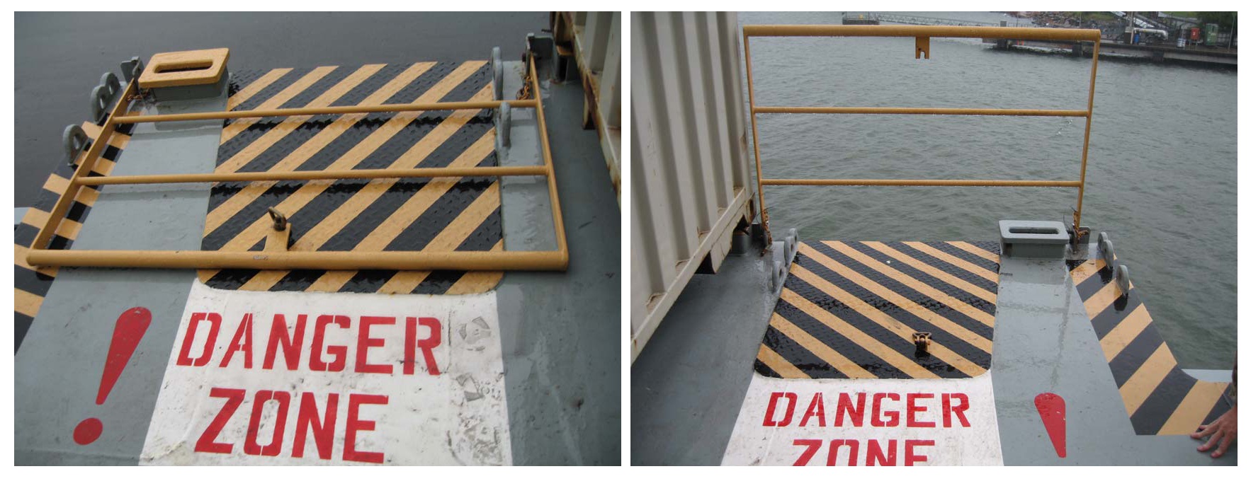 As a result of the accident the ship has, at least, installed a safety rail and painted danger zone markings at the point of the fall. The pictures below show the changes that have been implemented. A safety rail has been installed at the work area and clear danger zone markings have been painted on the area.