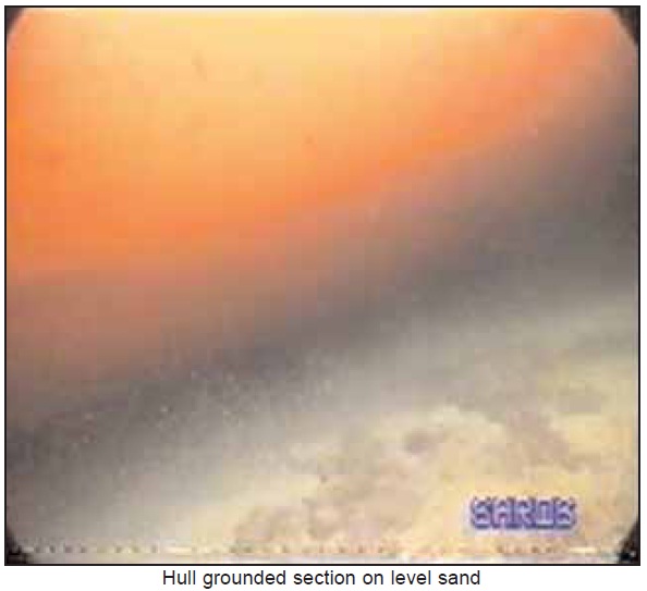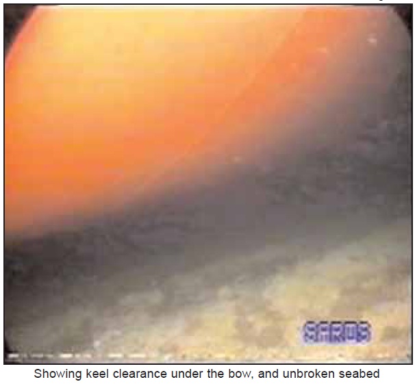 Divers entered the water at 1645 on 12 December, and recorded their findings on video. No hull damage was found, other than the hull coating being scored and scraped.