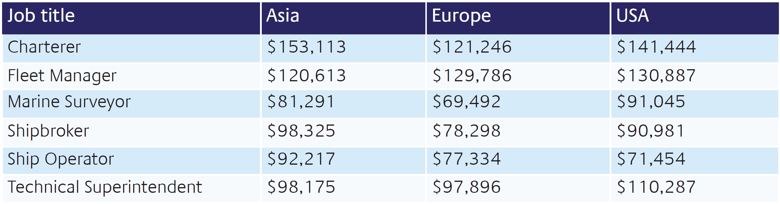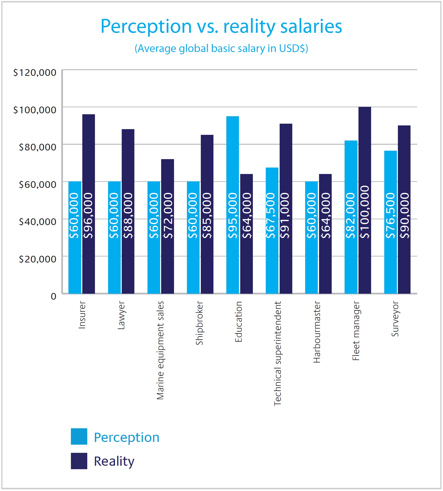 Finally according to the report there is a mixed opinion by shore-based employees regarding salaries within the maritime industry. There was very little difference between the perception of technical and commercial roles.