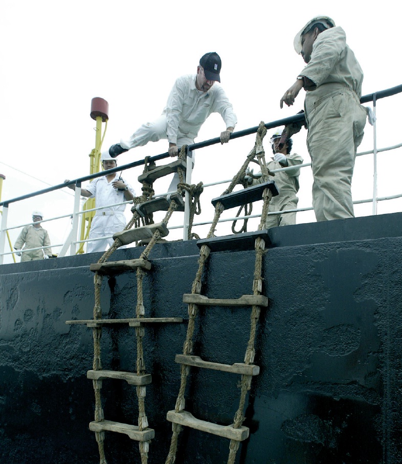 3. Pilot ladders need to be properly stowed, carefully inspected and maintained, and correctly rigged. The local environment may weaken the rope (chemicals).