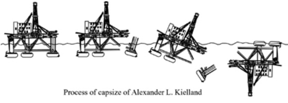 The Alexander L. Kielland was designed as an oil drilling platform with a pentagon structure by France, and it was constructed from 1969 through 1977 by CFEM (Compagnie Francaise d’Enterprises Metalliques). The platform was delivered to Norway in July 1976. In 1978, the accommodation capacity of 80 was increased to 348. Annual inspections were mainly carried out for the columns and pontoons, and the inspection in September 1979 had passed. However the bracing that failed had not been included in the inspection.