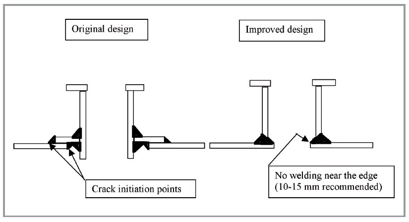 The probable cause of some of the cracks could have been a rough edge cut with an oxy-acetylene torch, which has resulted in the initiation of a crack. For other cracks welding had been carried out near the edge of the hole in the deck plating. Cracks have also developed from pipe penetrations where a doubler has been used instead of insert plates.