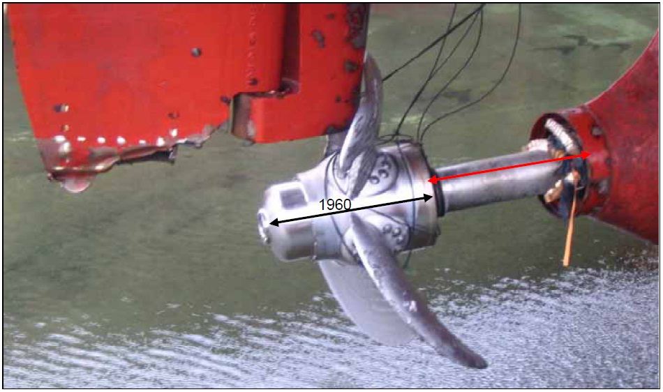 The vessel’s propeller and the propeller shaft and its bearings as well as the rudder were damaged. In addition to this, the aft part of the vessel’s hull got a clear dent (figures below). After the propeller hit the bottom rock, it pulled out the propeller shaft while the vessel was moving forwards. The shaft came off from the thrust bearings, and its inner part, which was narrower in diameter, remained loose in the opening of the shaft tube. Water started to flow into the engine room through the shaft tube. The thrust bearings broke the cooling water pipes and the cooling water tank 19 started to empty. The lower part of the rudder blade became first partly loose, and it later fell to the bottom in its entirety.
