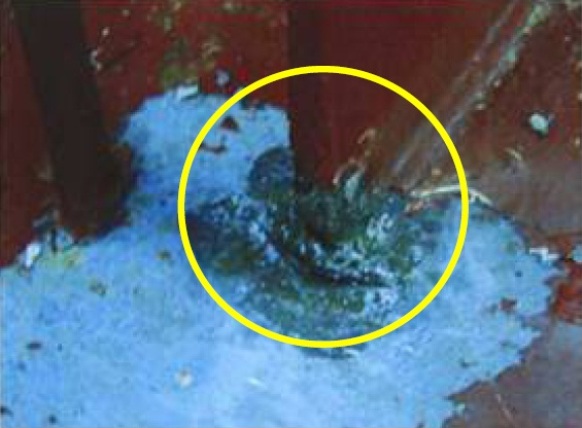 Cause of defect: These brackets were originally designed with radii and 10-15 mm toes. The stoppers were not aligned with underdeck longitudinals and were instead supported by transverse stiffeners. Fracture due to stress concentration. As stoppers were not aligned directly with longitudinals, the brackets terminated on soft plate, leading to a stress concentration. Analysis carried out after the incident indicated that the underdeck structure was sufficient for the loads induced by the pipes, however the toes of the brackets did increase the stress in the deck. This stress concentration quickly led to cracks in an already highly stressed deck