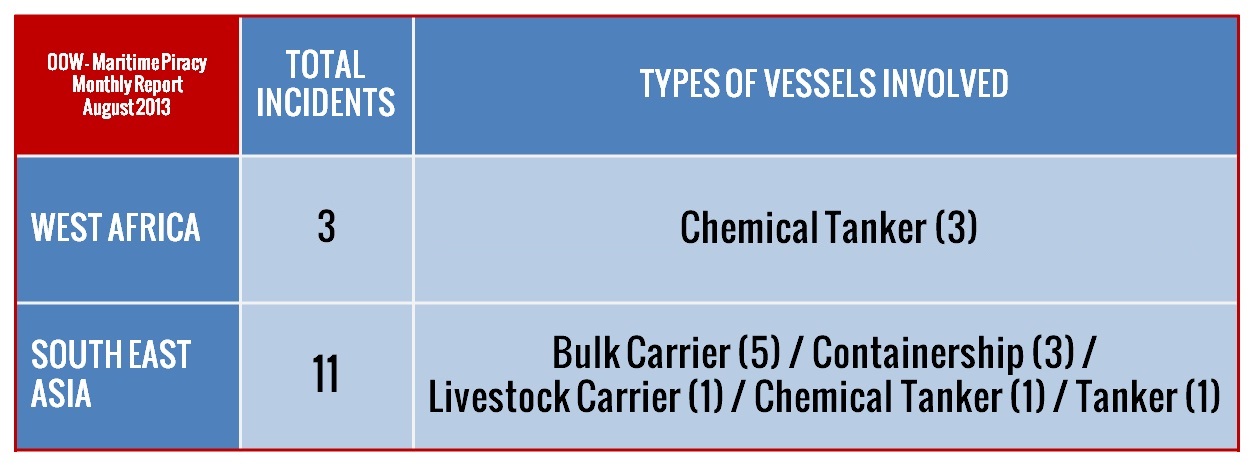 PIRACY & ARMED ROBBERY REPORTS until last week of August