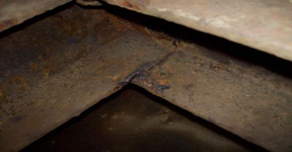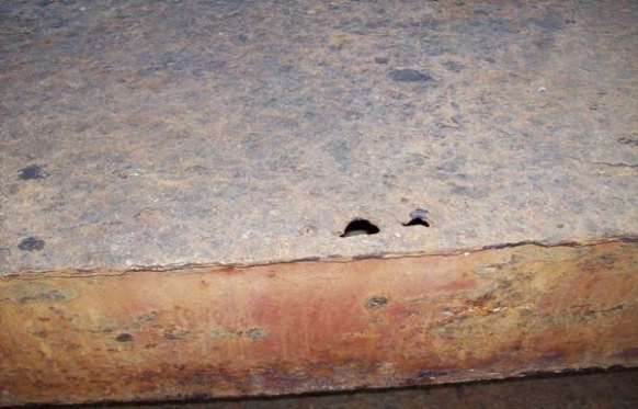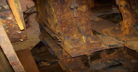 Photo above: Corroded and cracked boat hook supports need to be repaired