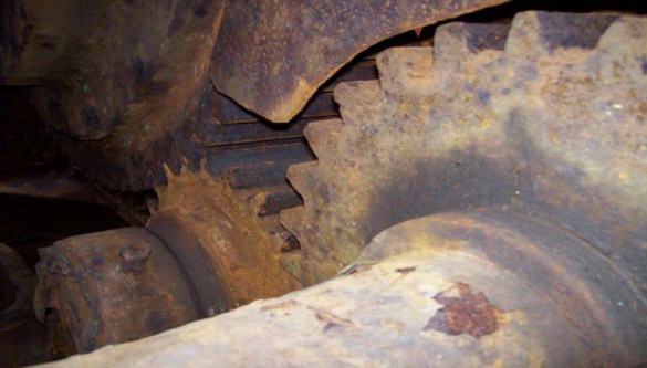 Photo above: Inoperative windlass found with heavily corrosion and damaged foundation