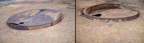 Photo above: Deck corroded and tarpaulins perished, damaged, hatch cover pontoons also corroded