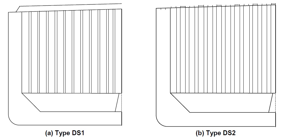 For bulkhead types VC2 and VC3, two deck supporting structure arrangements are described DS1 and DS2.