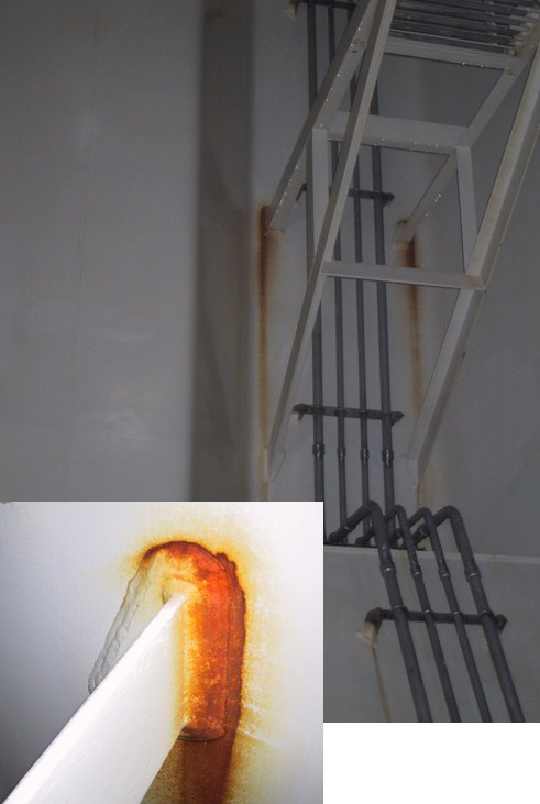Material wastage of corrugated bulkheads on double hull tankers is relatively low. Corrugated bulkheads are generally fitted to product or chemical tankers and are therefore fully coated, well maintained and not subjected to mechanical wear. The surface of corrugations is almost free from surface stiffening which means that the incidence of grooving is reduced compared to stiffened structures where regular patterns of drainage can develop. However where brackets or outfit items such as access ladders or pipework are attached to bulkheads, accelerated corrosion can occur in way of coating breakdown at the attachment points. Internal corrosion of stool spaces is possible in way of coating breakdown particularly where these spaces are arranged for the carriage of water ballast.