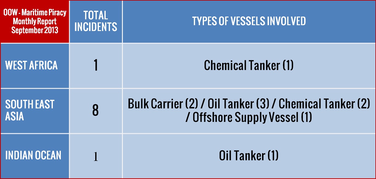 PIRACY & ARMED ROBBERY REPORTS until last week of September