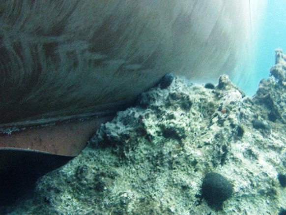 Another interesting video, taken underwater by divers, shows the hull of the vessel at the point where the ship grounded.
