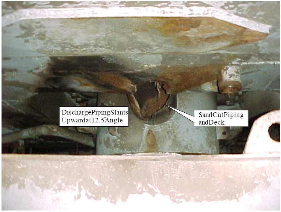 Photo above: Portside diverter piping exit after loss of pipe end.