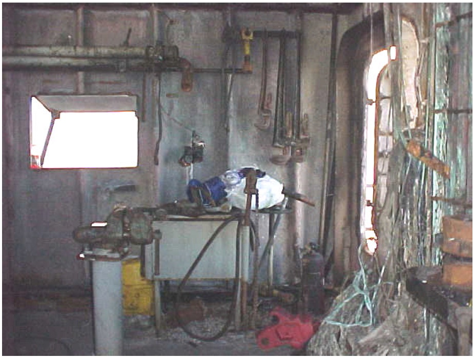 Photo above: Portside floor adjacent to diverter, exploded acetylene bottles.