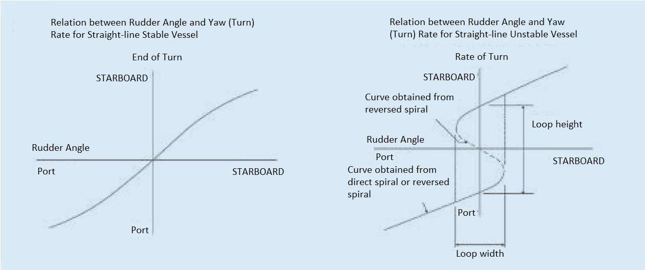 Figure above: Relationship between rudder angle and yaw (turn) rate for Straight-line stable/unstable vessel.