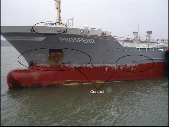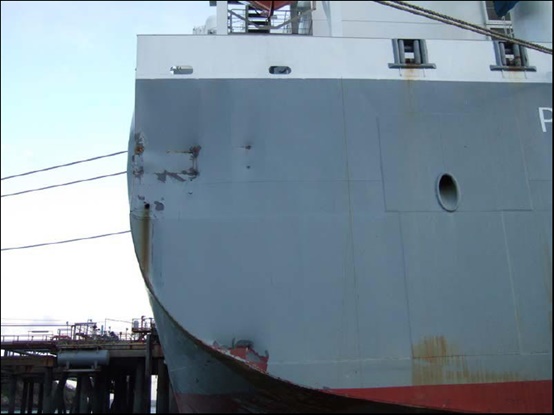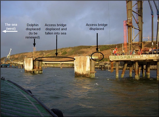 Shortly after this second, uncontrolled,propulsion, the vessel’s port quarter made heavy contact with the first of the mooring dolphins to the west of the jetty. She then continued moving astern to also make contact with the second dolphin, resulting in significant damage being caused to both the vessel and the mooring dolphins.