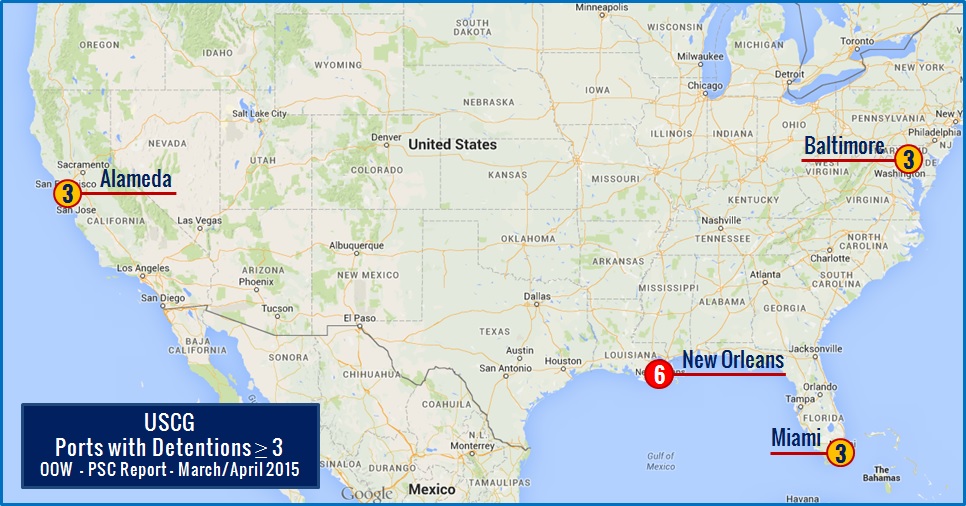 Regarding the USCG the data used are referring only to the detentions for the month of March and April 2015 since until the time this report is being released there aren’t any other data available by the USCG.