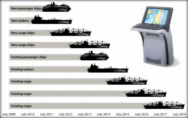 Since 2002 Electronic Chart Display and Information System (ECDIS) fitting has been available for vessels along with relevant backup arrangement as per SOLAS regulation V/19-2.1.4. This option has changed into a mandatory requirement (IMO Maritime Safety Committee in May / June 2009) since further amendments to SOLAS regulation V/19 made the carriage of ECDIS mandatory on vessels engaged in international voyages.